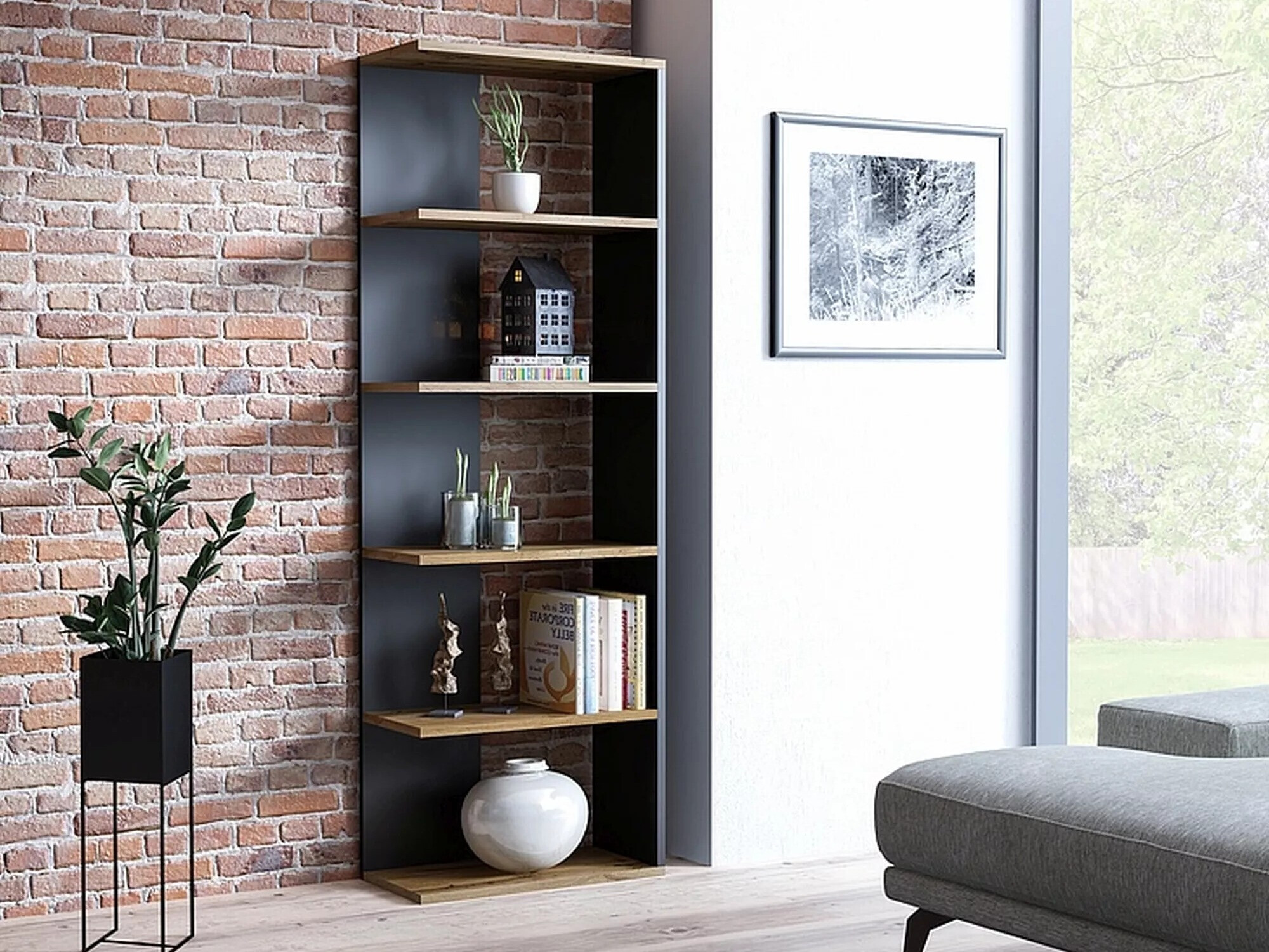 Boekenkast Detroit 151 (Zwart + Wotan eik)