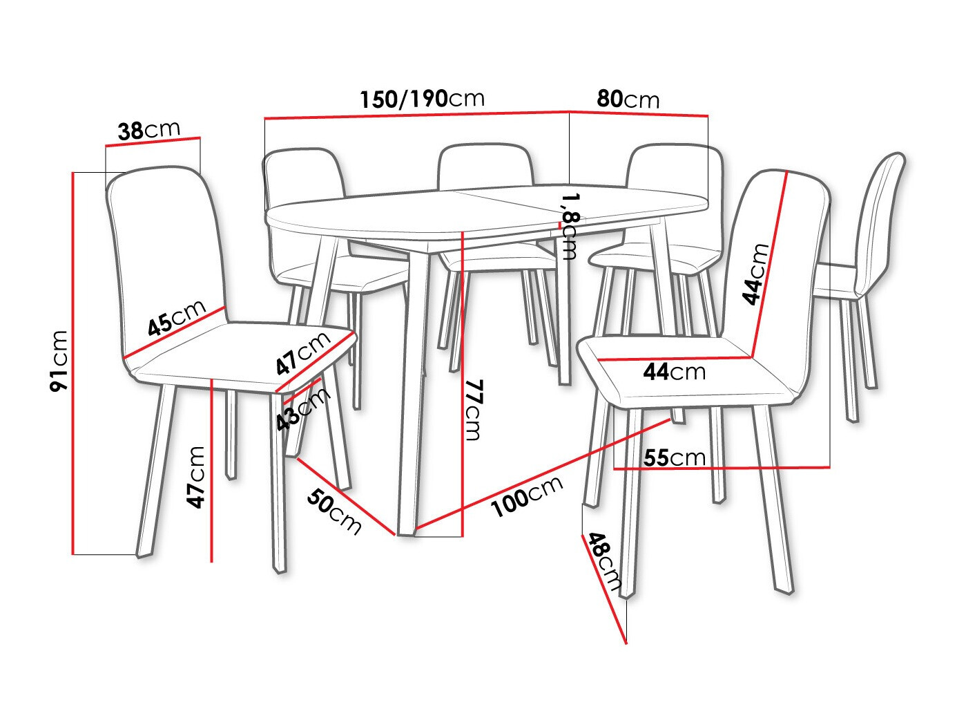 Afmetingen van de stoel: