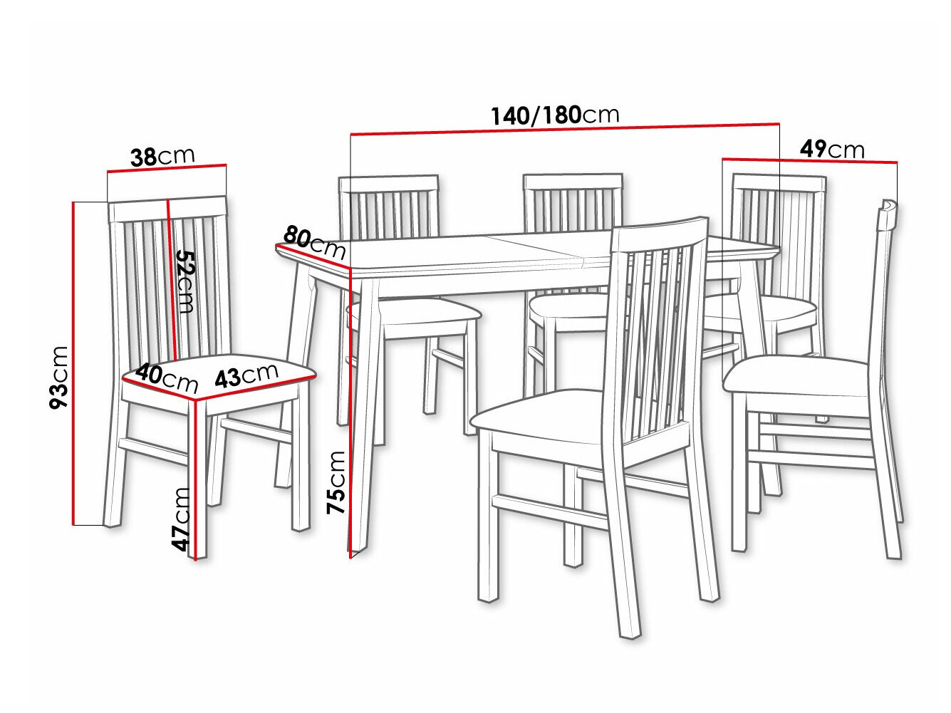 Afmetingen van de stoel: