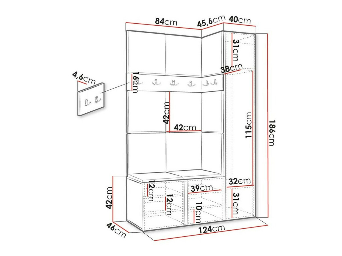 16 x 84 x 4.6; 16 x 42 x 4.6 cm