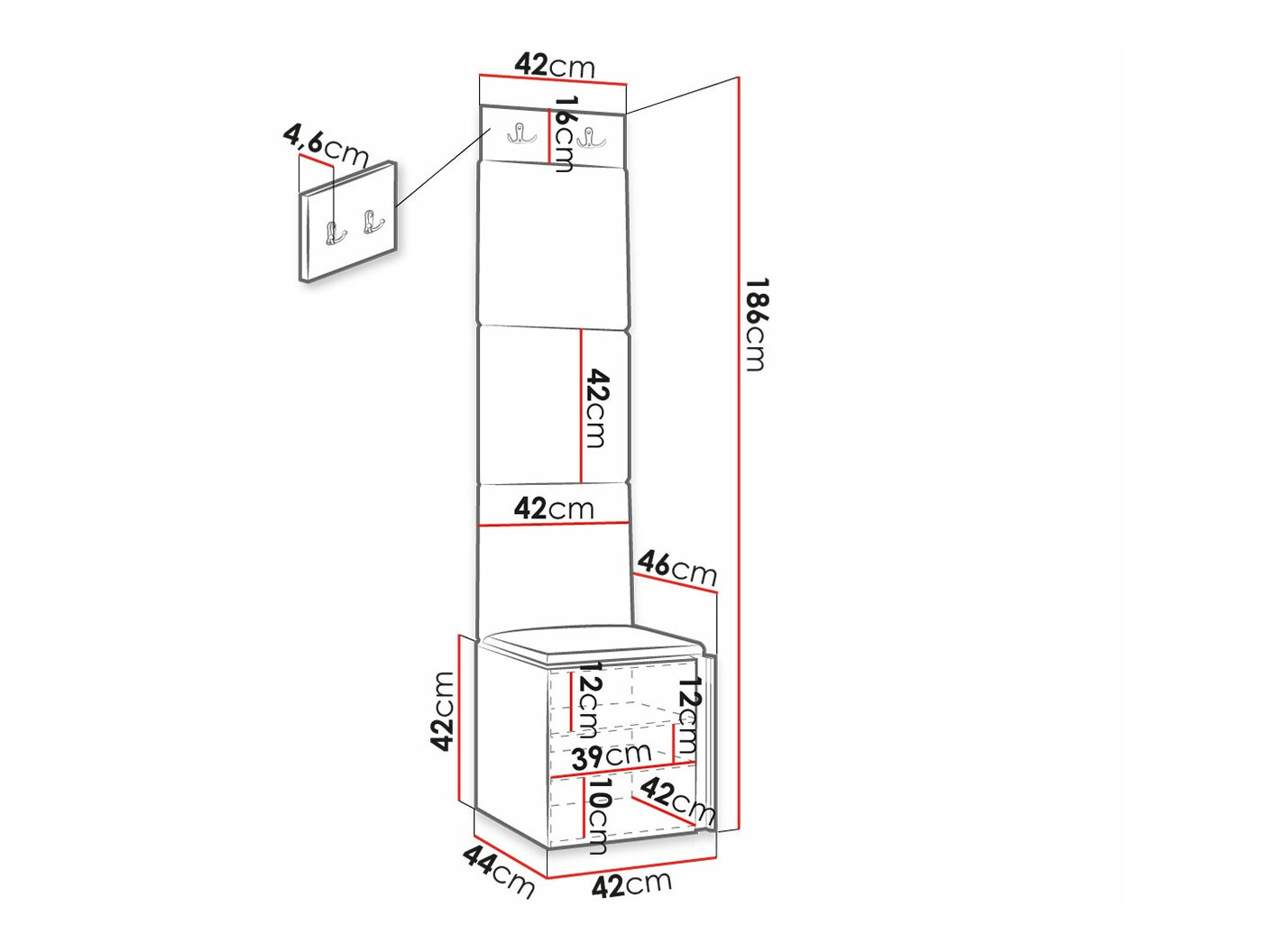 Schoenenkast afmetingen: