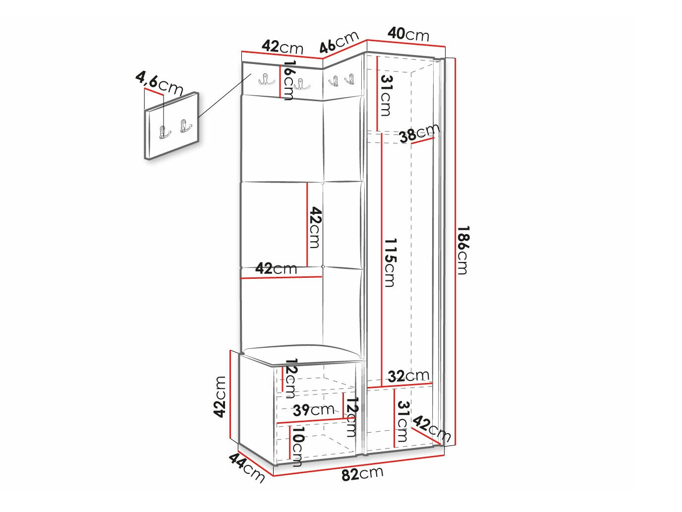 186 x 40 x 46 cm