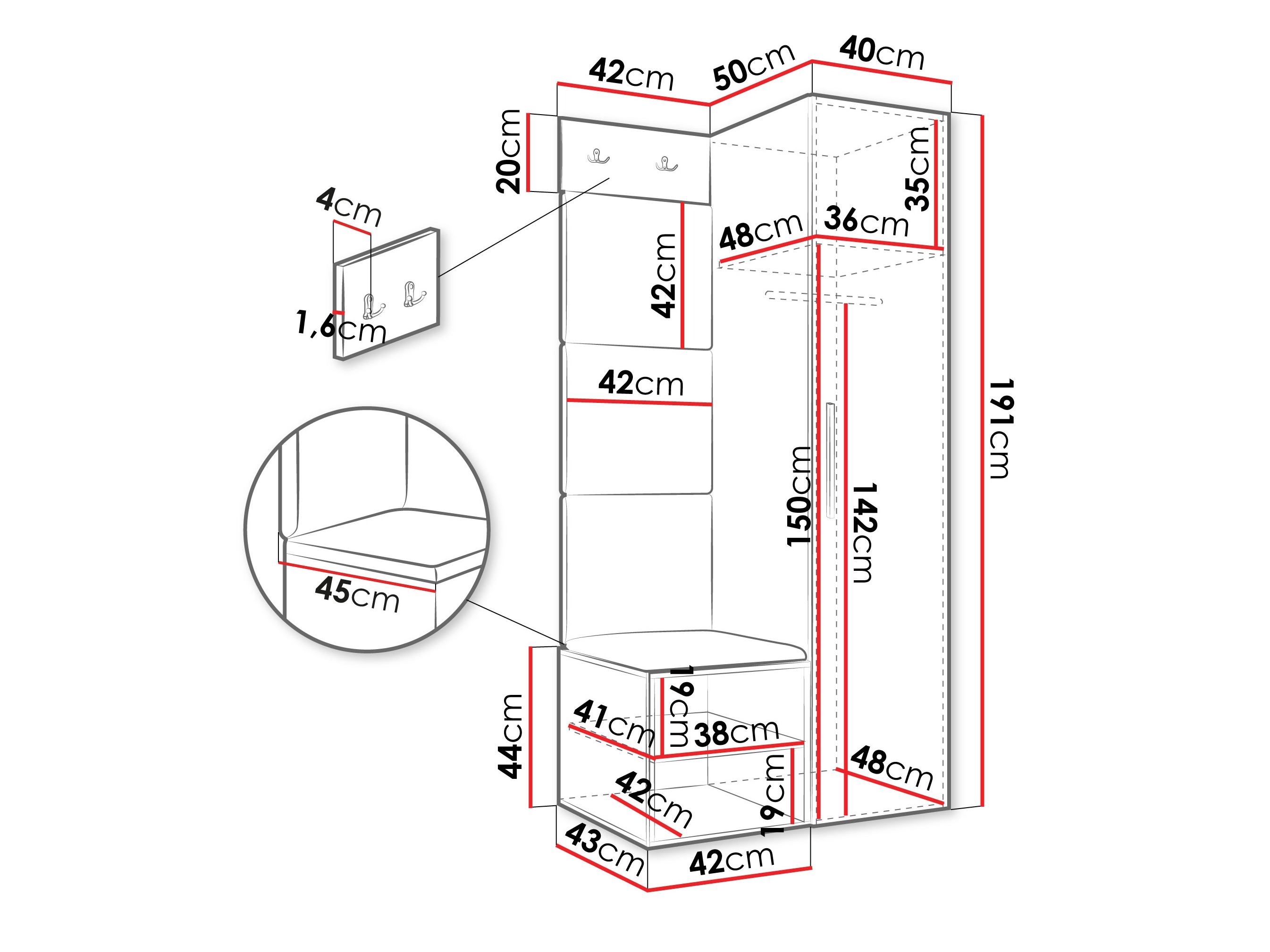 Afmetingen kledingkast: