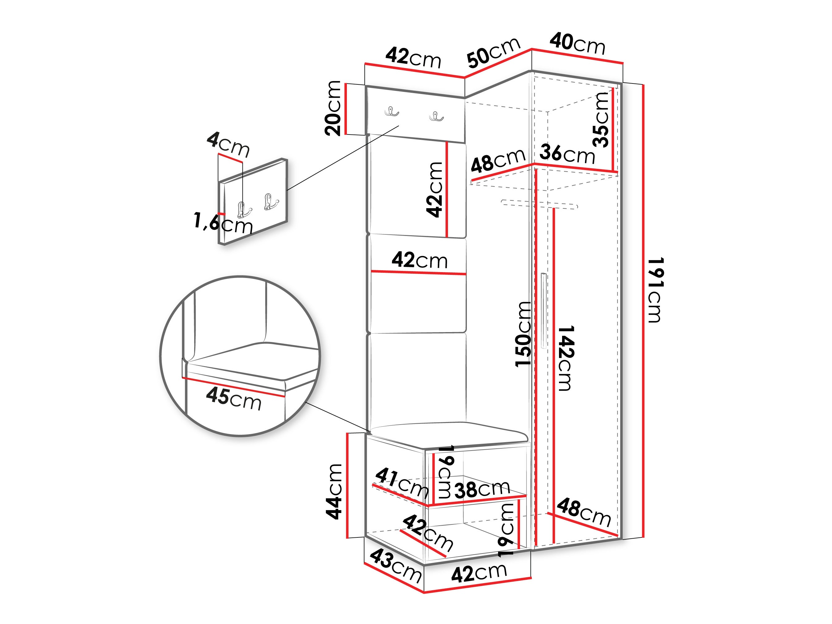 Afmetingen kledingkast: