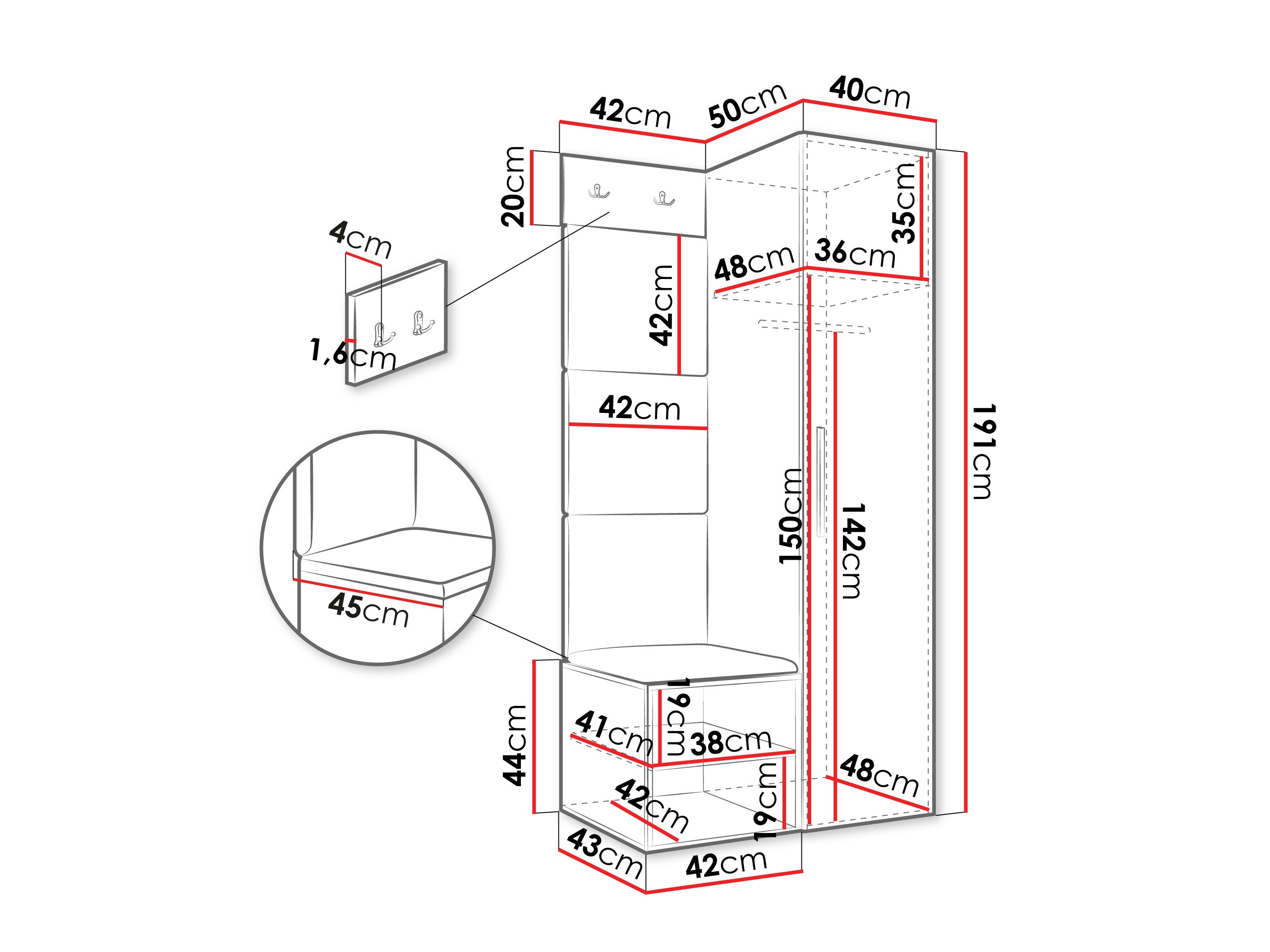 Afmetingen kledingkast: