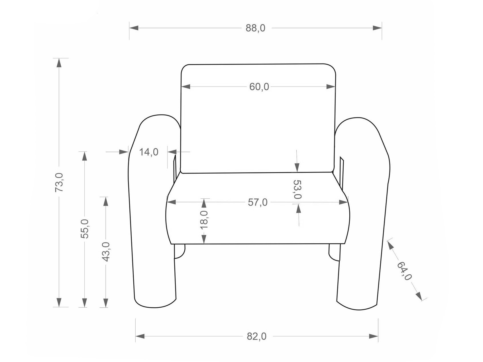Breedte van de armleuning: