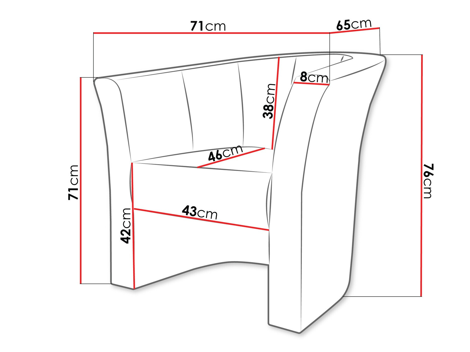 Breedte van de armleuning: