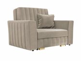 Een ideale optie om ruimte in de kamer te besparen. Het ontvouwt zich heel gemakkelijk, het is handig om beddengoed in de doos te doen. Zeer mooie kleuren en materiaal van de fauteuil. Ik raad 100% aan