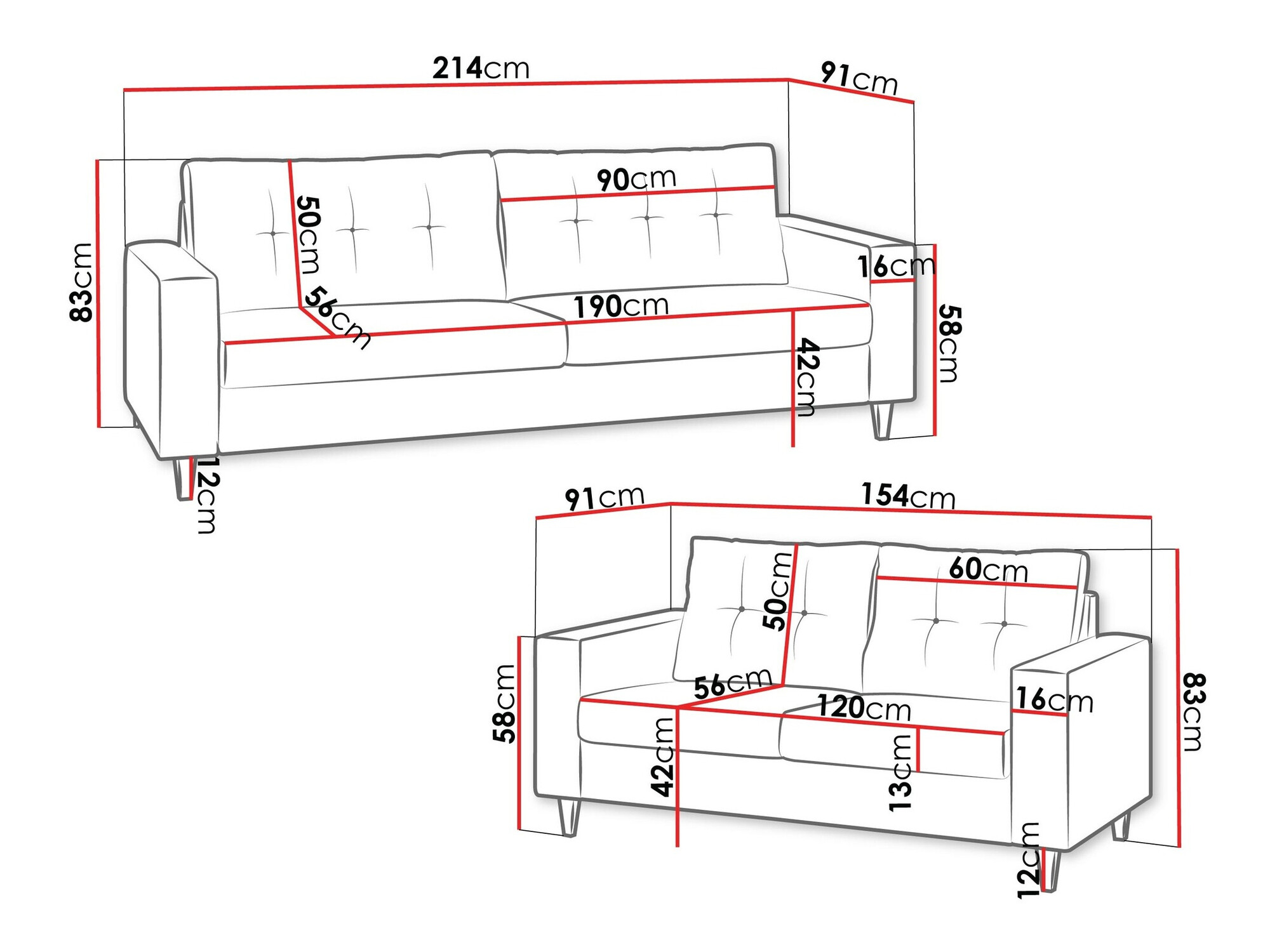 Afmetingen van een tweepersoonsslaapbank: