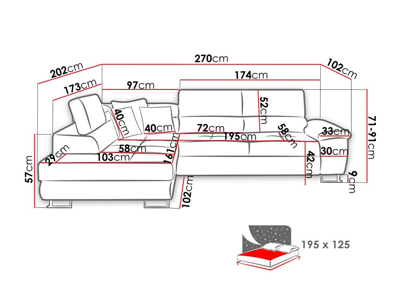 Kijk je frontaal naar de bank, dan bevindt het verlengde deel van de rechteroptie zich rechts van u. De gekozen hoekoptie moet de doorstroming van de ruimte verbeteren en ervoor zorgen dat je je gemakkelijk door de ruimte kunt bewegen.