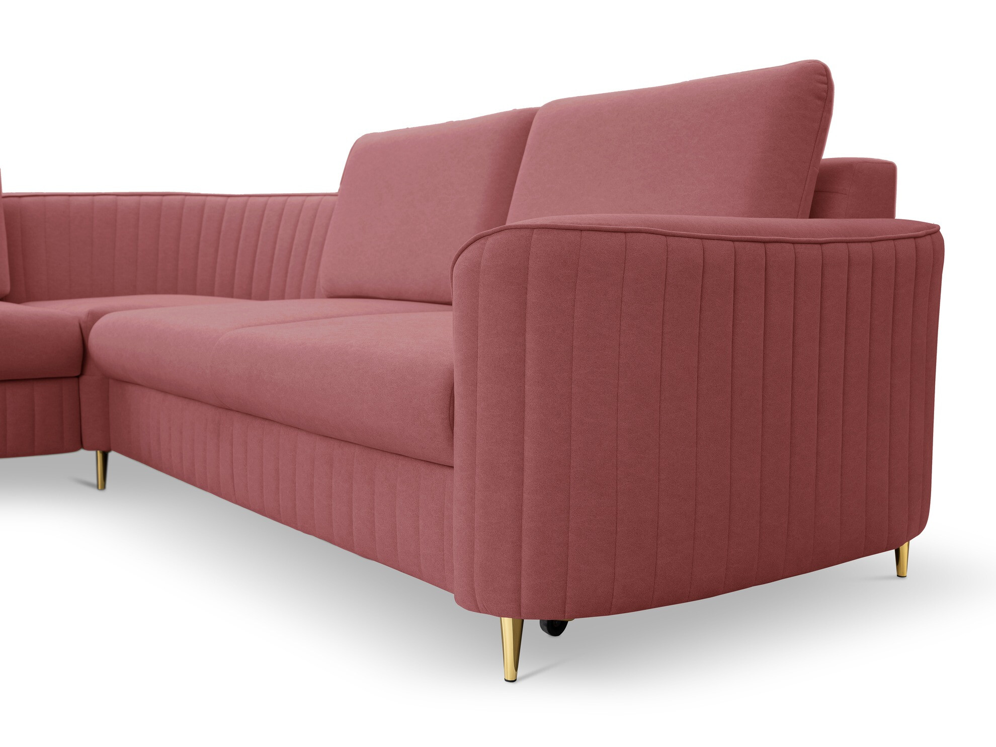 Kijk je frontaal naar de bank, dan bevindt het verlengde deel van de rechteroptie zich rechts van u. De gekozen hoekoptie moet de doorstroming van de ruimte verbeteren en ervoor zorgen dat je je gemakkelijk door de ruimte kunt bewegen.