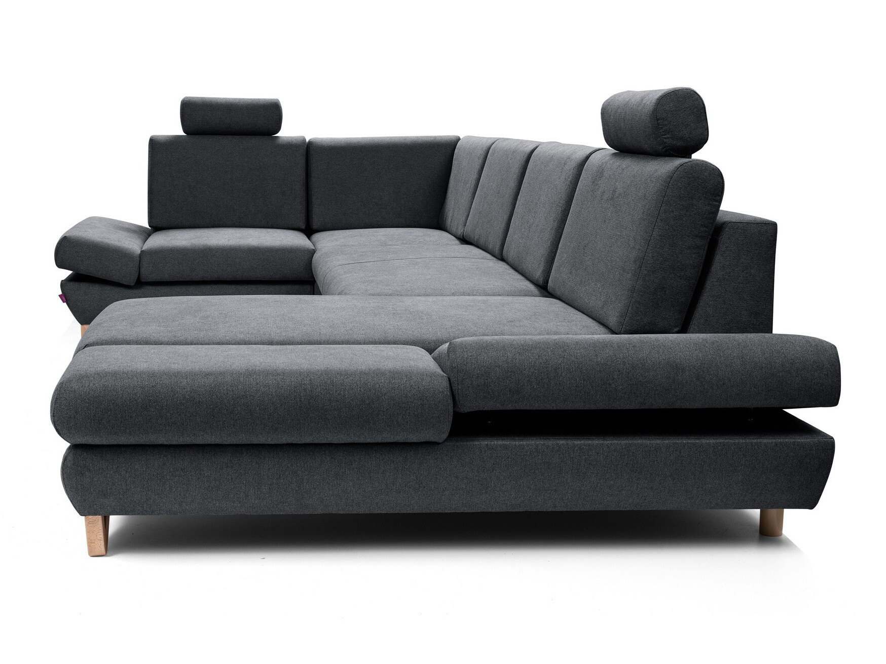 Kijk je frontaal naar de bank, dan bevindt het verlengde deel van de rechteroptie zich rechts van u. De gekozen hoekoptie moet de doorstroming van de ruimte verbeteren en ervoor zorgen dat je je gemakkelijk door de ruimte kunt bewegen.