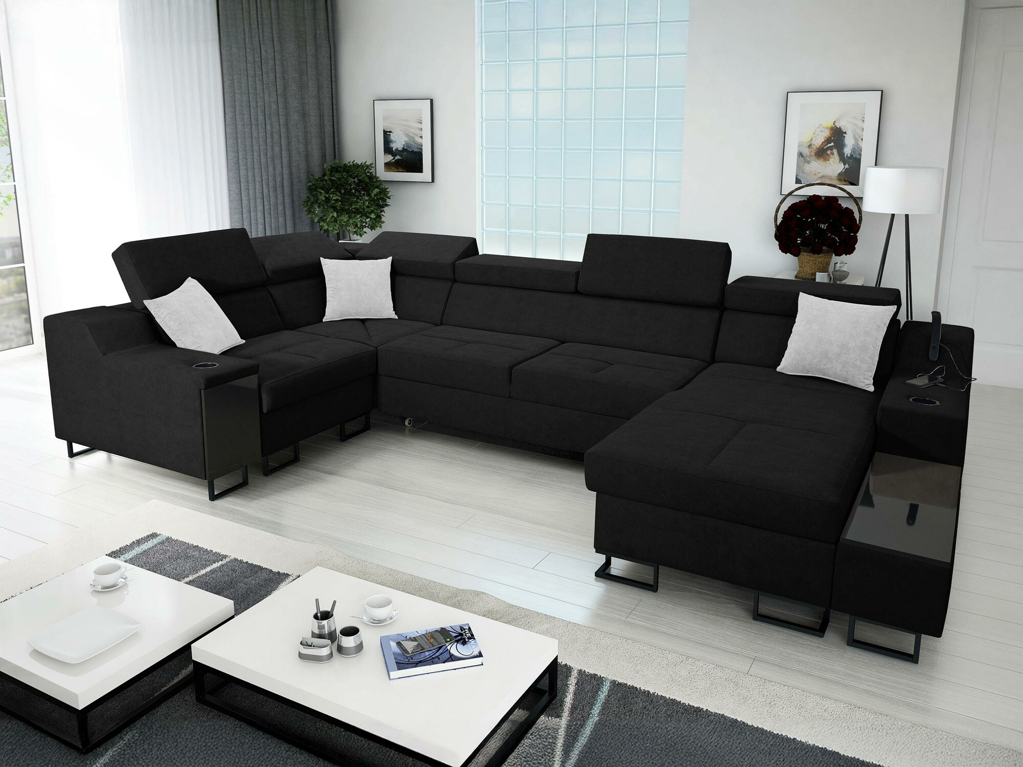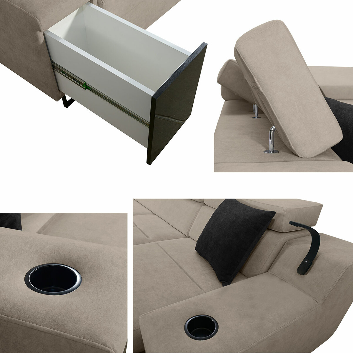 Kijk je frontaal naar de bank, dan bevindt het verlengde deel van de rechteroptie zich rechts van u. De gekozen hoekoptie moet de doorstroming van de ruimte verbeteren en ervoor zorgen dat je je gemakkelijk door de ruimte kunt bewegen.