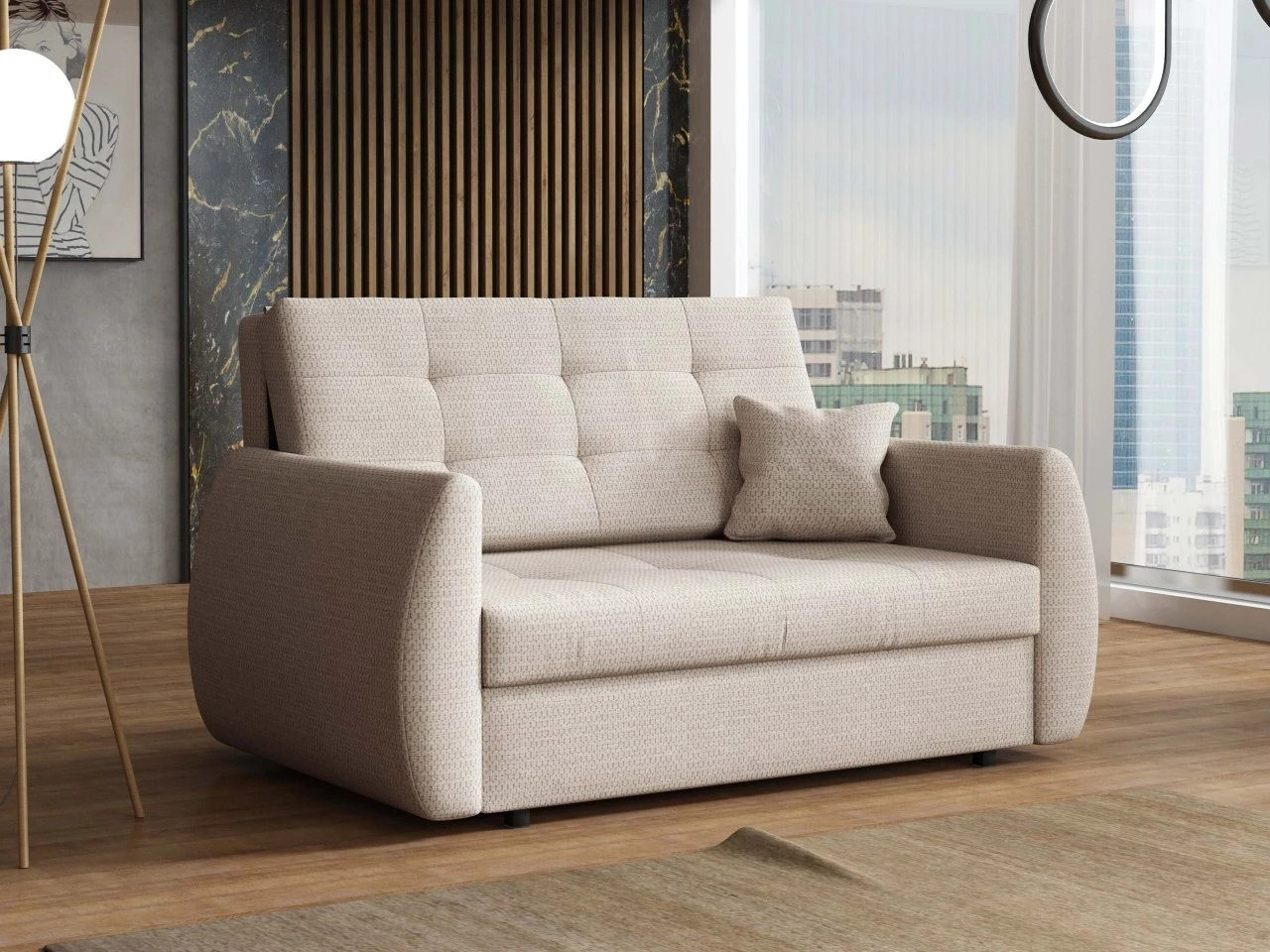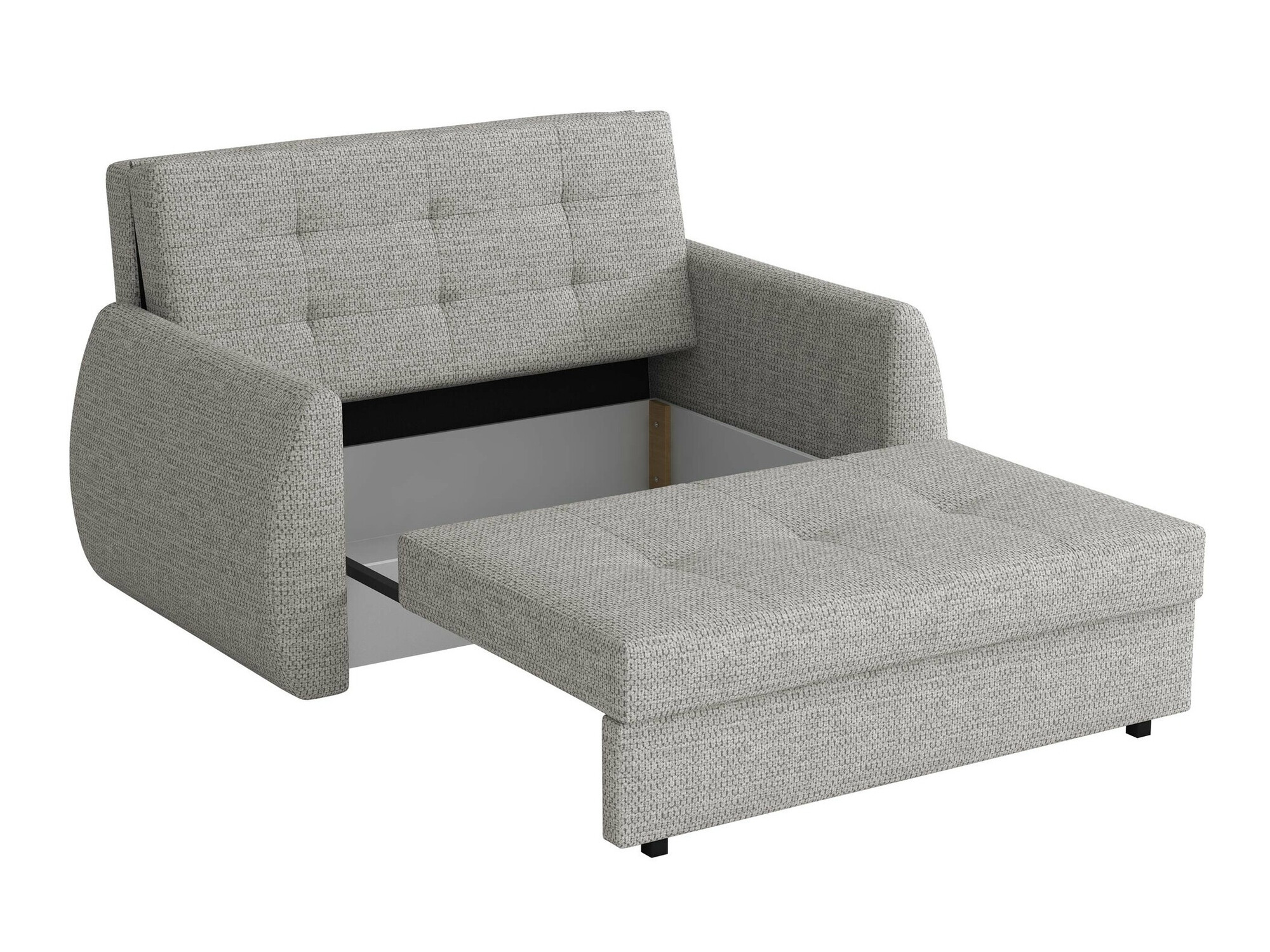 Hetgene waarin deze slaapbankstijl van de anderen onderscheidt is te zien in hoe het deel dat je uitvouwt beweegt zonder de vloer te raken, waardoor de vloer beschermd wordt tegen mogelijke krassen. Door simpelweg de zitting op te tillen en uw kant op te trekken, en daarna de achterkant van het meubel te laten zakken, creërt u een extra plek om op te slapen.