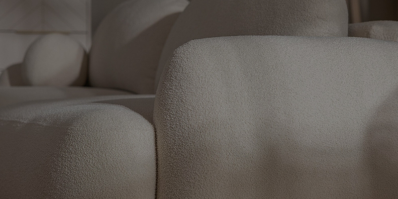 Stof valt op door zijn unieke structuurpatroon, gecreëerd door lussen en knopen van verschillende groottes. Deze onderscheidende eigenschap geeft meubels een uitzonderlijk karakter en een gezellig gevoel.