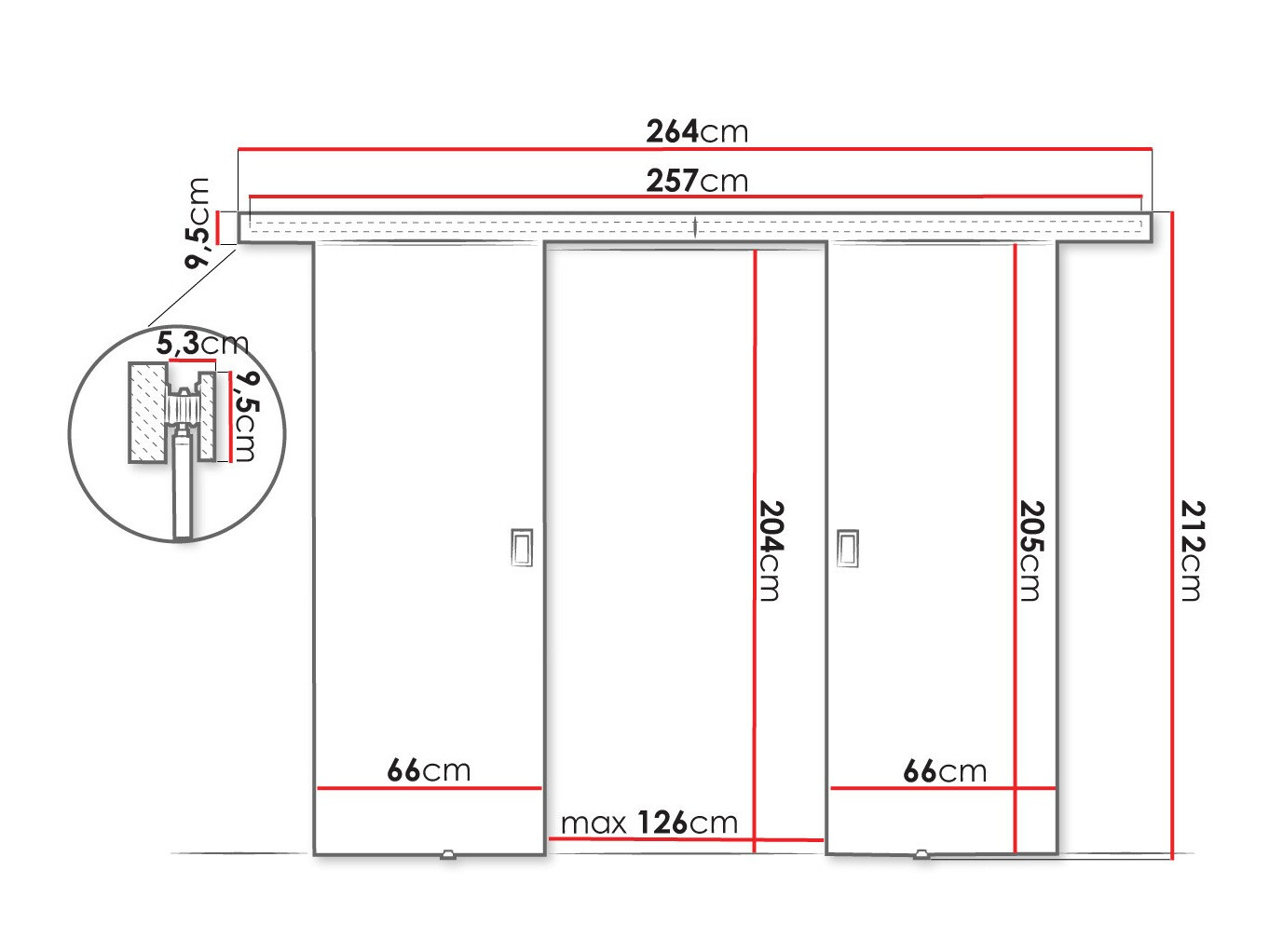Afmetingen schuifdeursysteem: