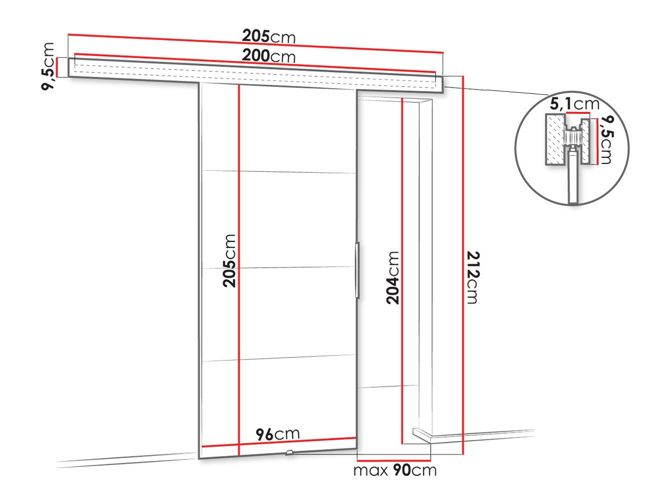 Het is belangrijk om de schuifdeur goed te bevestigen. Bij dit type deur worden geen bevestigingsschroeven geleverd, deze zul je dus zelf moeten verzorgen. Elke muur vereist een ander type schroef of zelfs boordiepte. Kies de bevestigingsschroeven op basis van het gewicht van de deur en het type muur: metselwerk, hout, enz.
