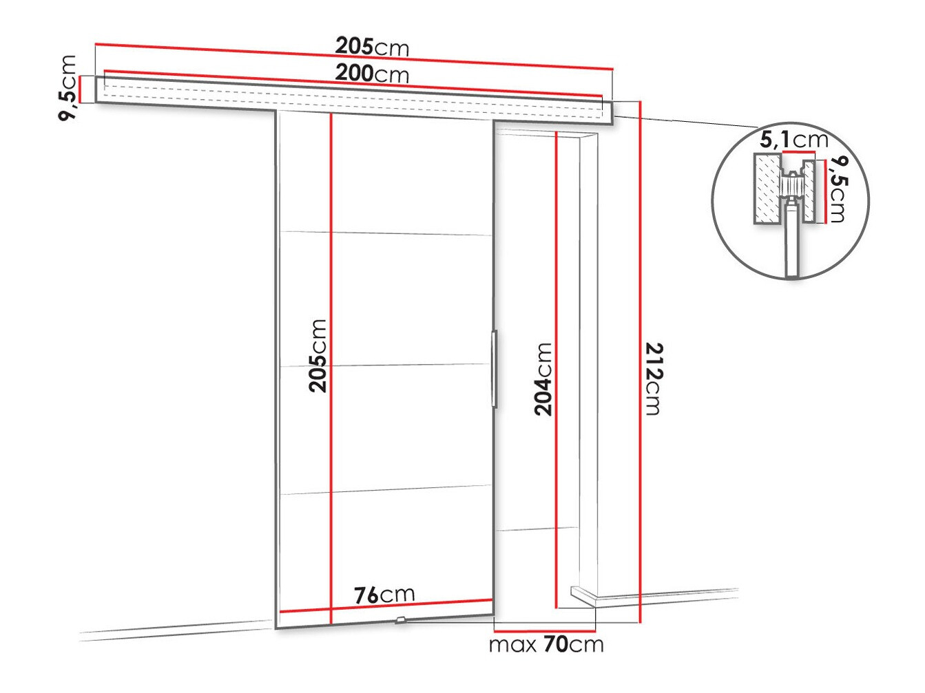 Afmetingen schuifdeursysteem: