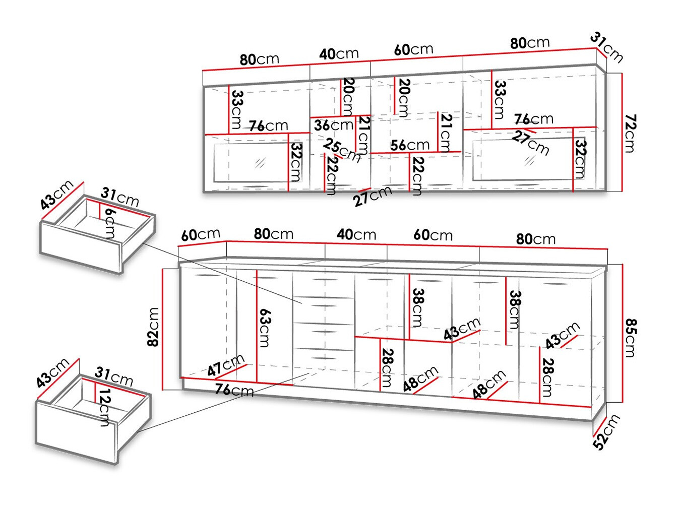 - Afzonderlijk voor elke kast
