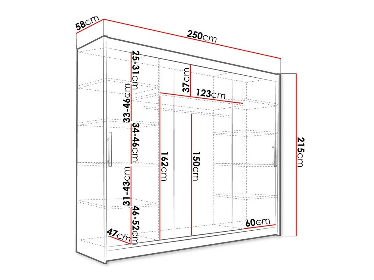 215 cm  250 cm  58 cm