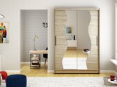 Een zeer mooie en compacte kledingkast met mooi gevormde spiegels. In een kleine kast kun je heel veel spullen kwijt.