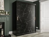 Kledingkast Hartford 248 (Matzwart + Zwart marmer)