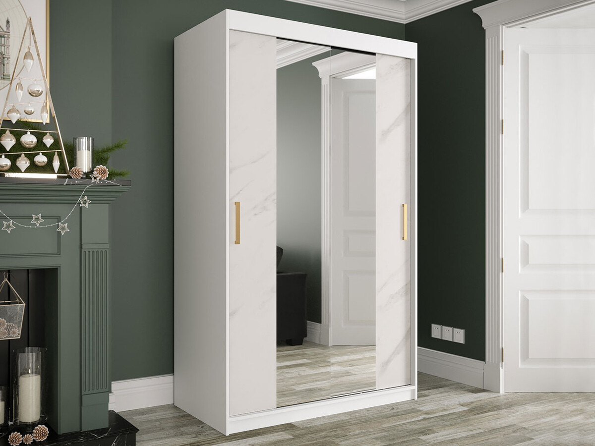 Kledingkast Hartford 253 (Mat wit + Wit marmer)