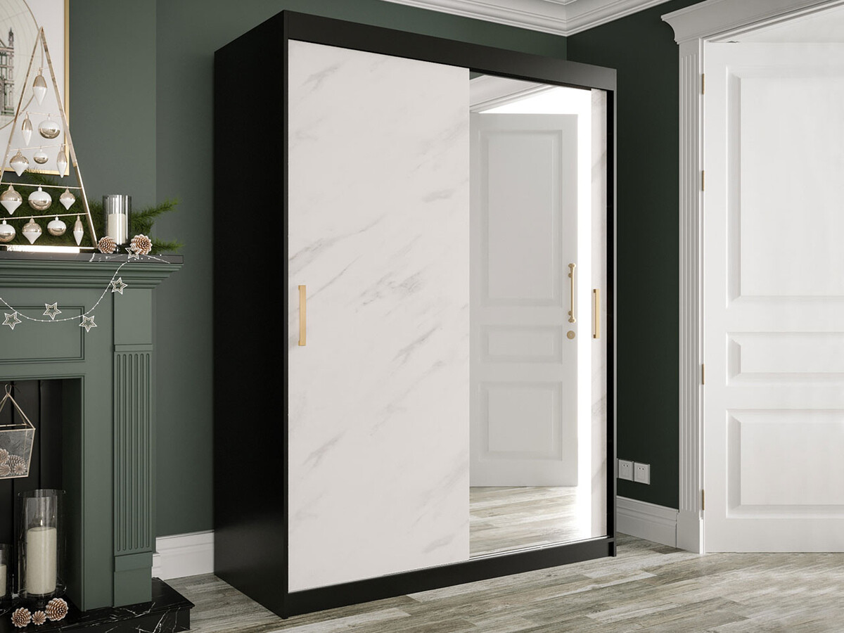 Kledingkast Hartford 260 (Matzwart + Wit marmer)