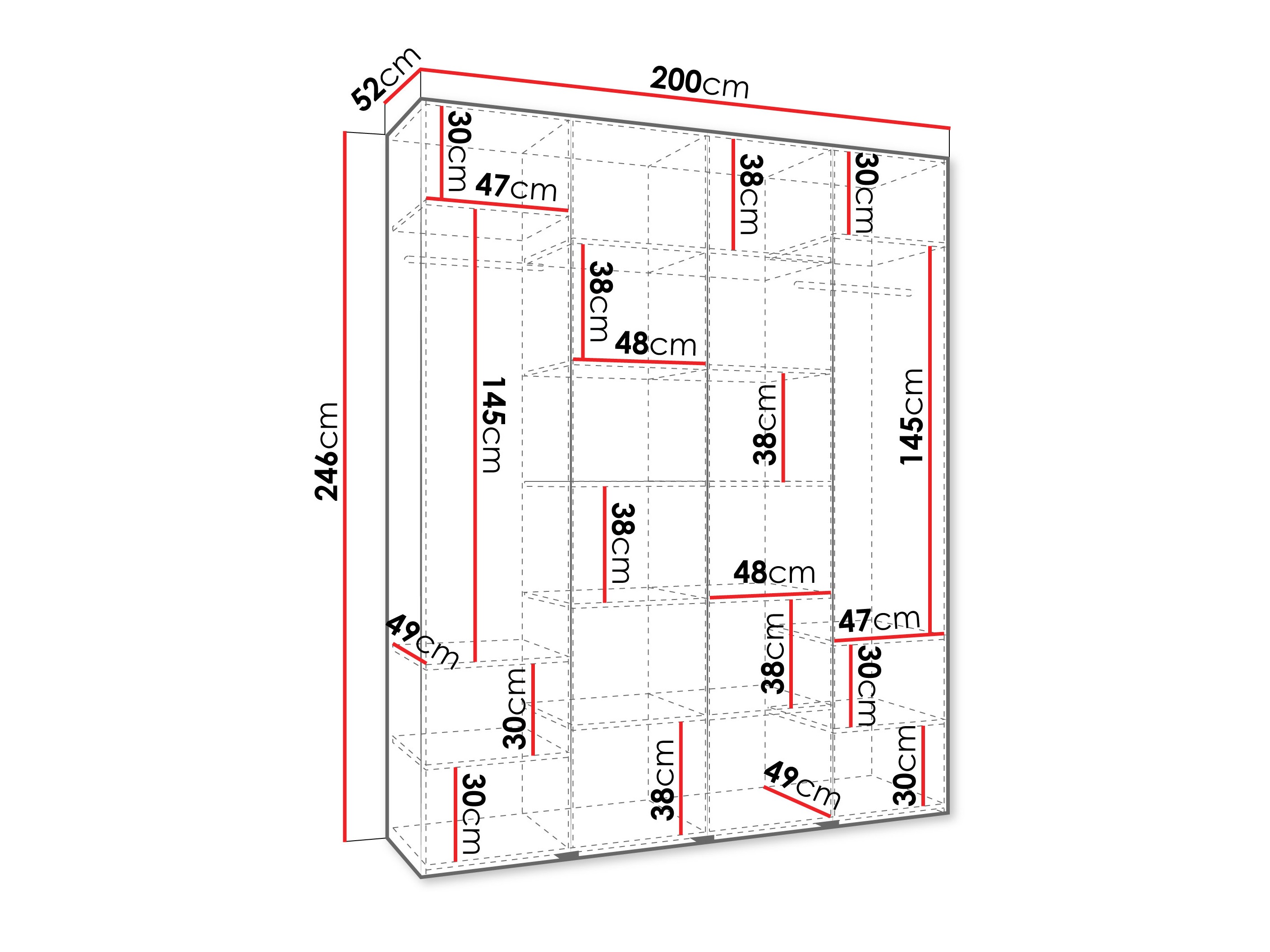 246 cm  110 cm  52 cm