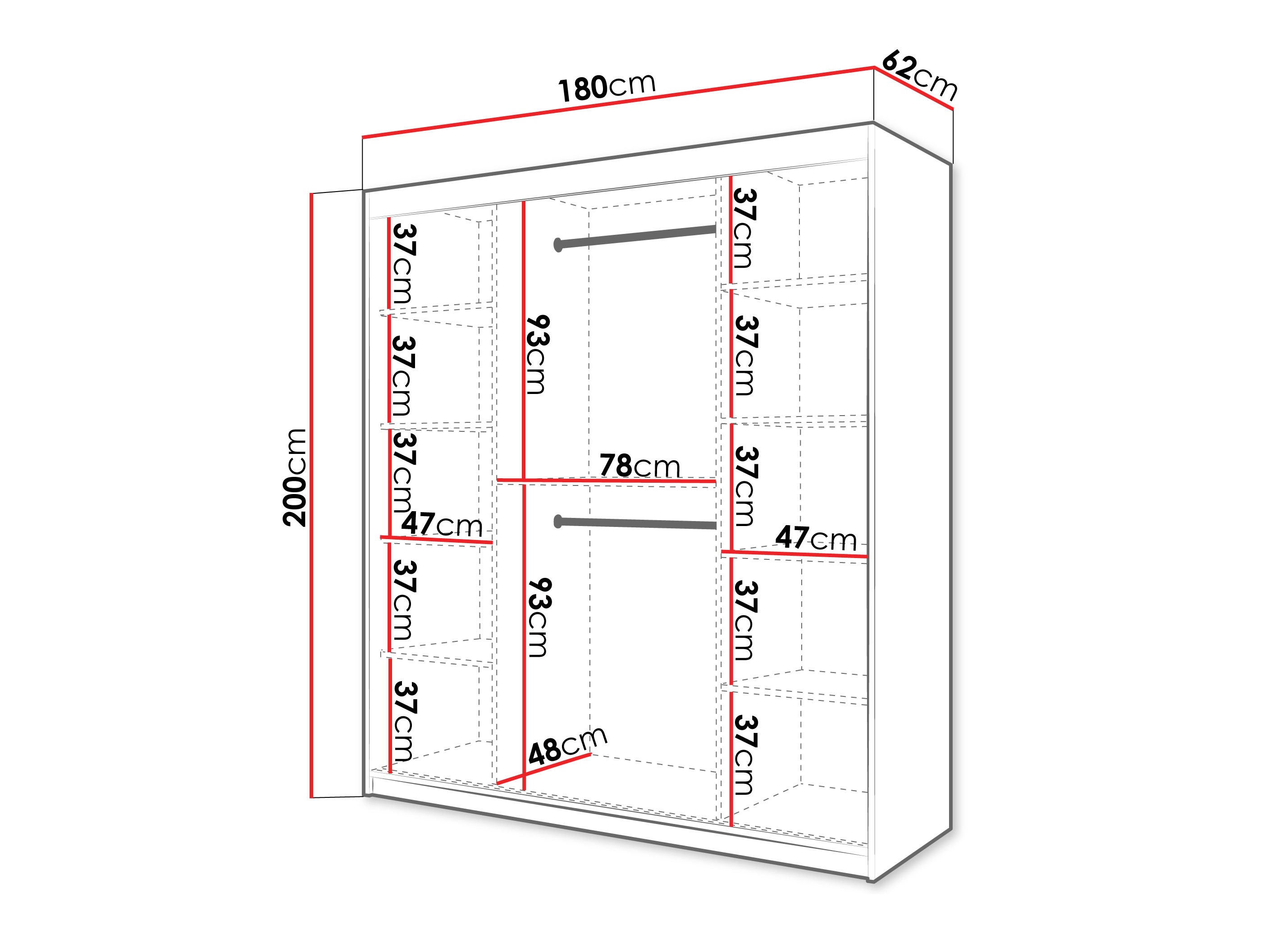 200 cm  180 cm  62 cm