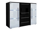 Een zeer mooi vormgegeven en ruime ladekast. Ik vind het leuk dat het dressoir mooie blauwe verlichting heeft, wat de kamer 's avonds erg gezellig maakt.