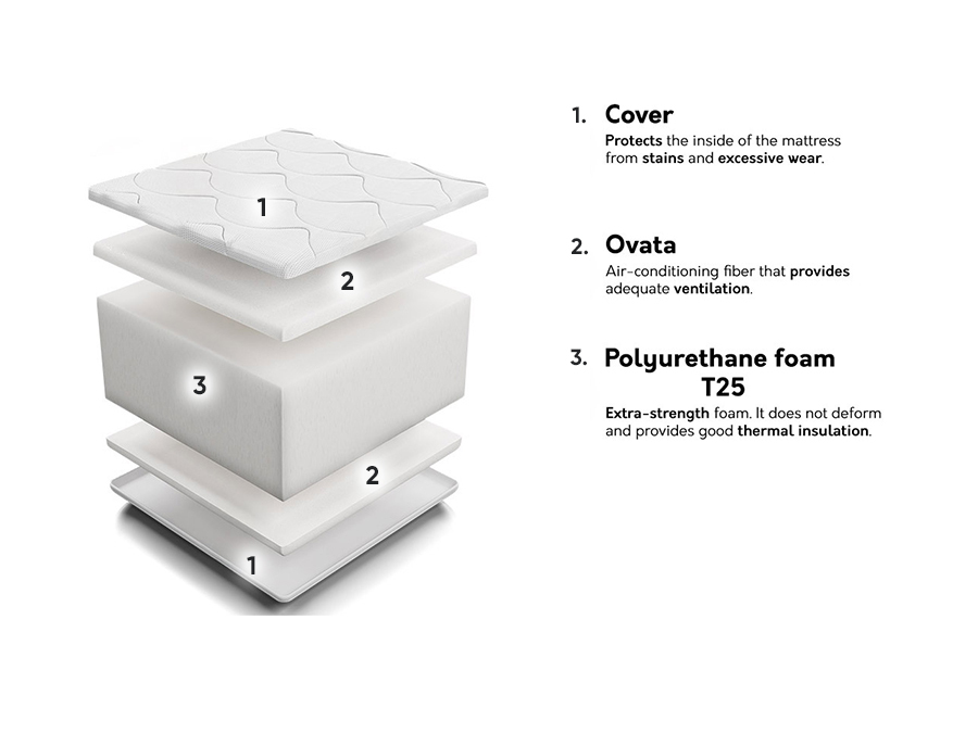 De matras is zeer comfortabel, ondersteunt het lichaam tijdens het slapen. Precies goed, niet te hard en niet te zacht. Bevordert een goede nachtrust.