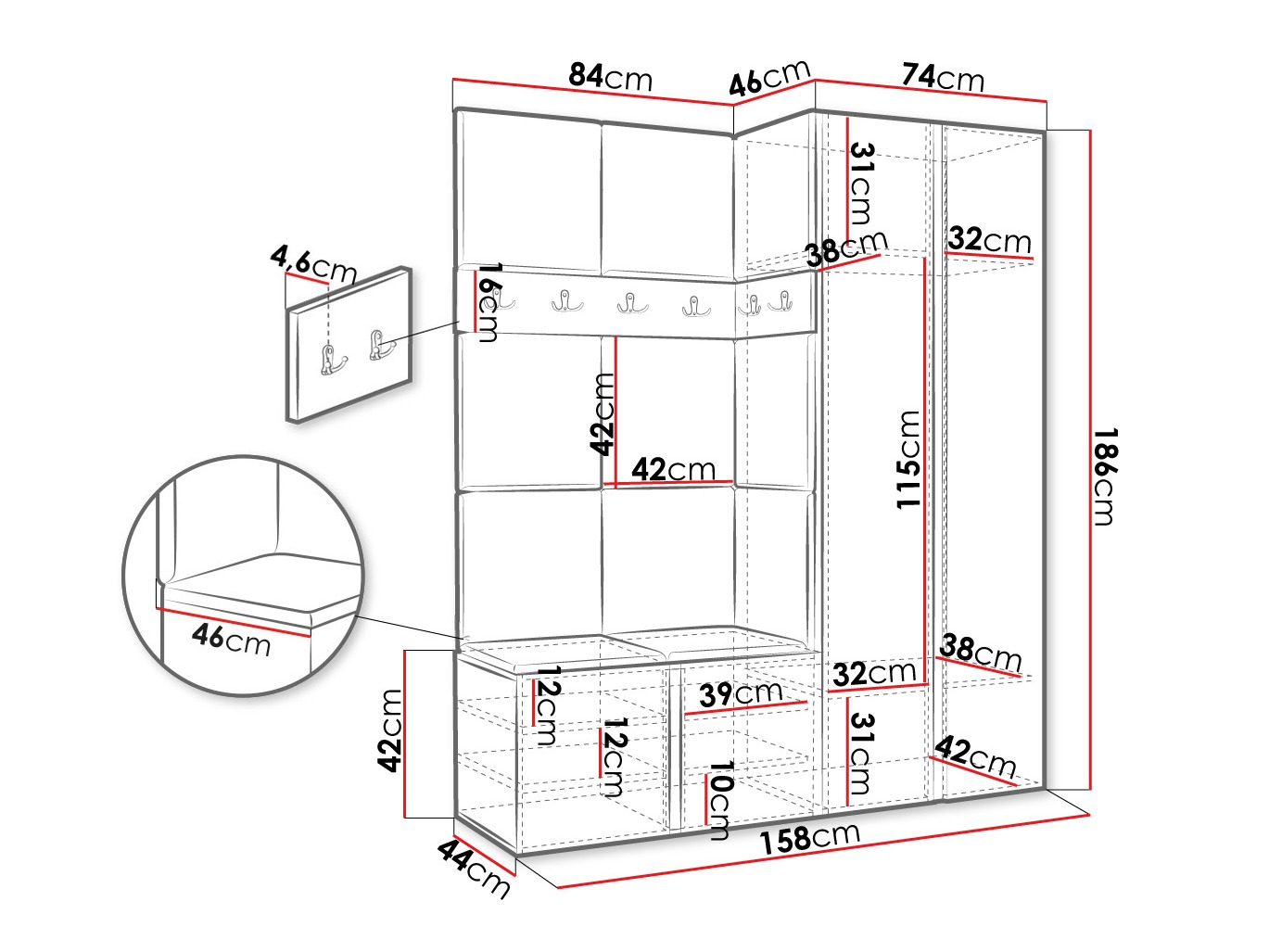 Snelle verzending. Eenvoudige installatie. De lakens kunnen van iets betere kwaliteit zijn. Het product op de foto komt overeen met de werkelijkheid. Ik heb het omgebouwd en daar was het ook heel goed voor. Ik moest de gasmeter en de watermeter in het hoge meubel verstoppen, maar er was nog schapruimte. Het hangende deel heb ik in de bovenste rij geplaatst, zodat er ook jassen op kunnen. Over het algemeen ben ik zeer tevreden, ik hoefde niet na te denken over op maat gemaakte meubels.