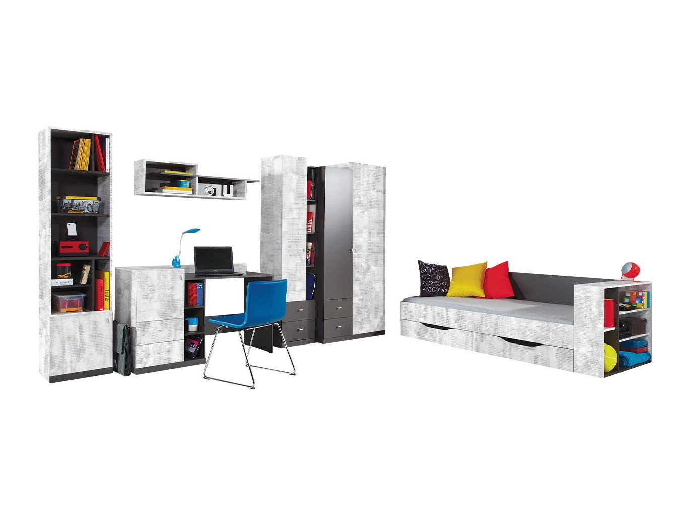 De reeks van de kinderkamer Omaha F128 (Grafiet + Grijs)