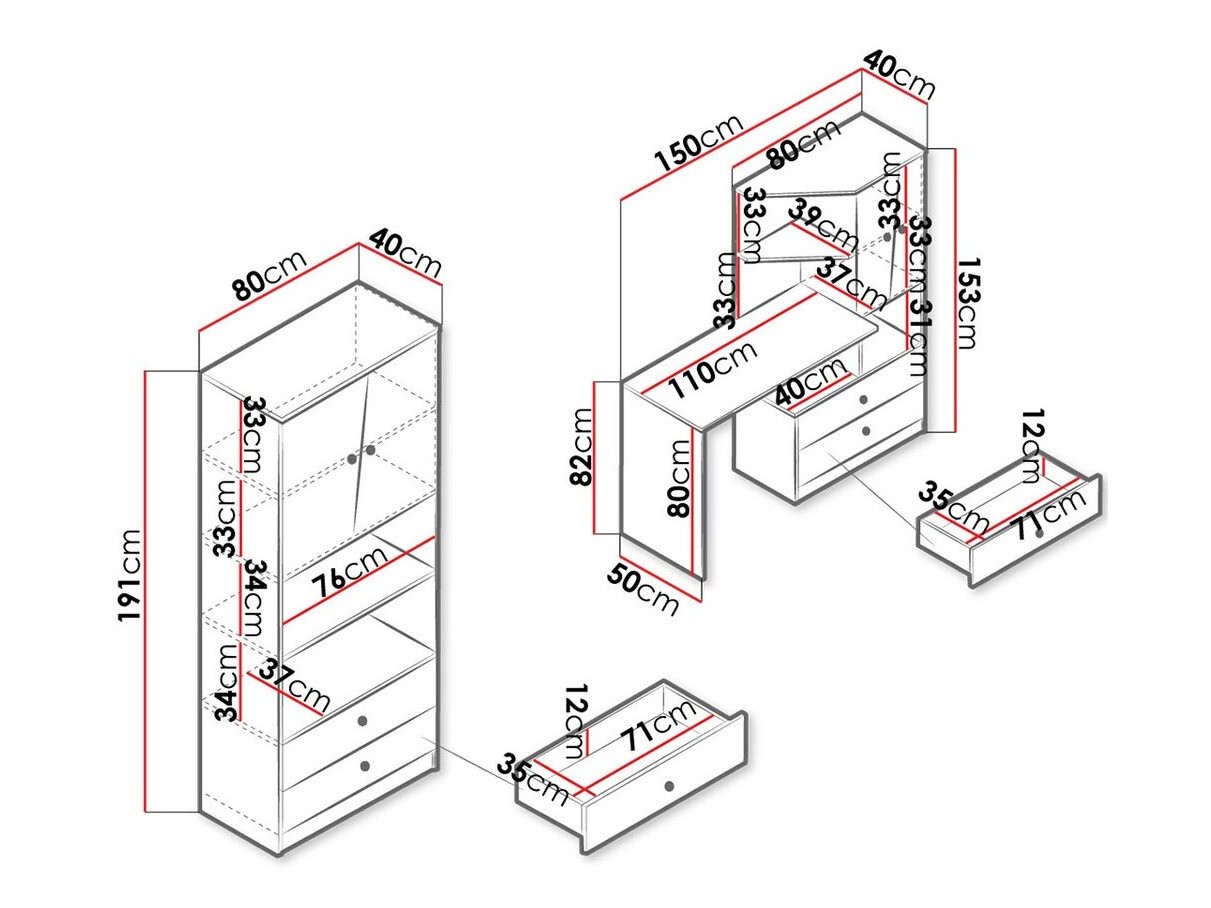 Het organiseren van de kamer van een jongere kan voor ouders een grote uitdaging zijn. Zijn kamer moet een plek hebben om te studeren en te ontspannen, maar ook ruimte om spullen en kleding op te bergen. De meubelcollectie combineert al deze wensen perfect en is geschikt voor een actieve tienerkamer. Functionaliteit, comfort en aantrekkelijk design - zo kunnen de meubels uit de collectie worden omschreven. De modern ogende meubels zijn verkrijgbaar in trendy kleurencombinaties: "Artisan" eiken met wit of "Artisan" eiken met wit en grijs. Ronde handgrepen aan de meubelen zijn een interessant decoratief element van de collectie dat de meubelen speelsheid geeft. Het is mogelijk om de kamer van een jongere in te richten door meubels te kiezen uit een breed assortiment van individuele meubels of door te kiezen voor kant-en-klare meubelsets. Deze jonge kamer meubels zijn gemaakt van duurzame materialen waardoor je jarenlang van de meubels kunt genieten. Het ontwerp wordt gecompleteerd door kunststof beschermde randen van de meubels, die gemaakt zijn van slagvast materiaal.