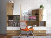 Het organiseren van de kamer van een jongere kan voor ouders een grote uitdaging zijn. Zijn kamer moet een plek hebben om te studeren en te ontspannen, maar ook ruimte om spullen en kleding op te bergen. De meubelcollectie combineert al deze wensen perfect en is geschikt voor een actieve tienerkamer. Functionaliteit, comfort en aantrekkelijk design - zo kunnen de meubels uit de collectie worden omschreven. De modern ogende meubels zijn verkrijgbaar in trendy kleurencombinaties: "Artisan" eiken met wit of "Artisan" eiken met wit en grijs. Ronde handgrepen aan de meubelen zijn een interessant decoratief element van de collectie dat de meubelen speelsheid geeft. Het is mogelijk om de kamer van een jongere in te richten door meubels te kiezen uit een breed assortiment van individuele meubels of door te kiezen voor kant-en-klare meubelsets. Deze jonge kamer meubels zijn gemaakt van duurzame materialen waardoor je jarenlang van de meubels kunt genieten. Het ontwerp wordt gecompleteerd door kunststof beschermde randen van de meubels, die gemaakt zijn van slagvast materiaal.