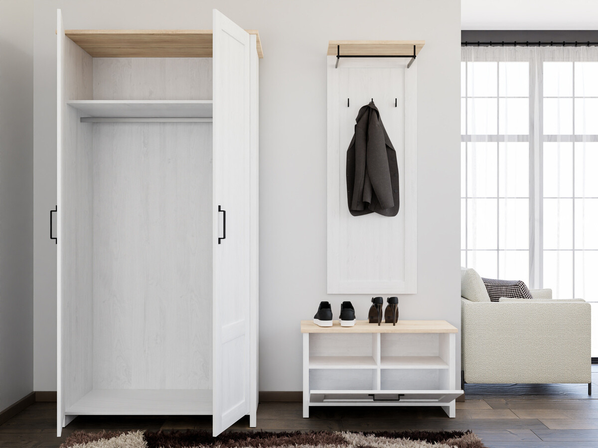Als je houdt van de eenvoud van de Scandinavische stijl en interieurideeën, dan is deze collectie wat je zoekt. De meubelcollectie verspreidt eenvoud en gezelligheid. De collectie wordt gedomineerd door heldere en lichte kleuren. De lichte gevels en kasten van de meubels hebben enkele hints van houtpatroon, wat het natuurlijkheid geeft en goed samengaat met de werkbladen. Deze collectie maakt indruk door de eenvoud van de gevels en de kleine handgrepen die als accent dienen. Met de meubels uit de collectie kun je een stijlvol ogende woonkamer of hal inrichten. Niet alleen gezellig, maar ook praktisch design biedt plaats aan de belangrijkste zaken en zorgt ervoor dat het gebruik van de meubels zo aangenaam mogelijk is. Bijzonder aan het meubel is het geruislozesluitmechanisme, dat de deuren en laden beschermt tegen snel dichtvallen. Dankzij speciale dempers worden de deuren en laden vlak voor het sluiten gestopt en langzaam ingetrokken, zodat ze geen lawaai maken. De meubelen komen zowel in lichte als donkere interieurs goed tot hun recht en creëren een Scandinavische sfeer.