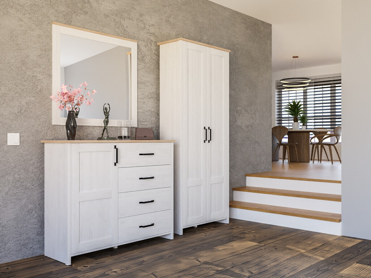Als je houdt van de eenvoud van de Scandinavische stijl en interieurideeën, dan is deze collectie wat je zoekt. De meubelcollectie verspreidt eenvoud en gezelligheid. De collectie wordt gedomineerd door heldere en lichte kleuren. De lichte gevels en kasten van de meubels hebben enkele hints van houtpatroon, wat het natuurlijkheid geeft en goed samengaat met de werkbladen. Deze collectie maakt indruk door de eenvoud van de gevels en de kleine handgrepen die als accent dienen. Met de meubels uit de collectie kun je een stijlvol ogende woonkamer of hal inrichten. Niet alleen gezellig, maar ook praktisch design biedt plaats aan de belangrijkste zaken en zorgt ervoor dat het gebruik van de meubels zo aangenaam mogelijk is. Bijzonder aan het meubel is het geruislozesluitmechanisme, dat de deuren en laden beschermt tegen snel dichtvallen. Dankzij speciale dempers worden de deuren en laden vlak voor het sluiten gestopt en langzaam ingetrokken, zodat ze geen lawaai maken. De meubelen komen zowel in lichte als donkere interieurs goed tot hun recht en creëren een Scandinavische sfeer.