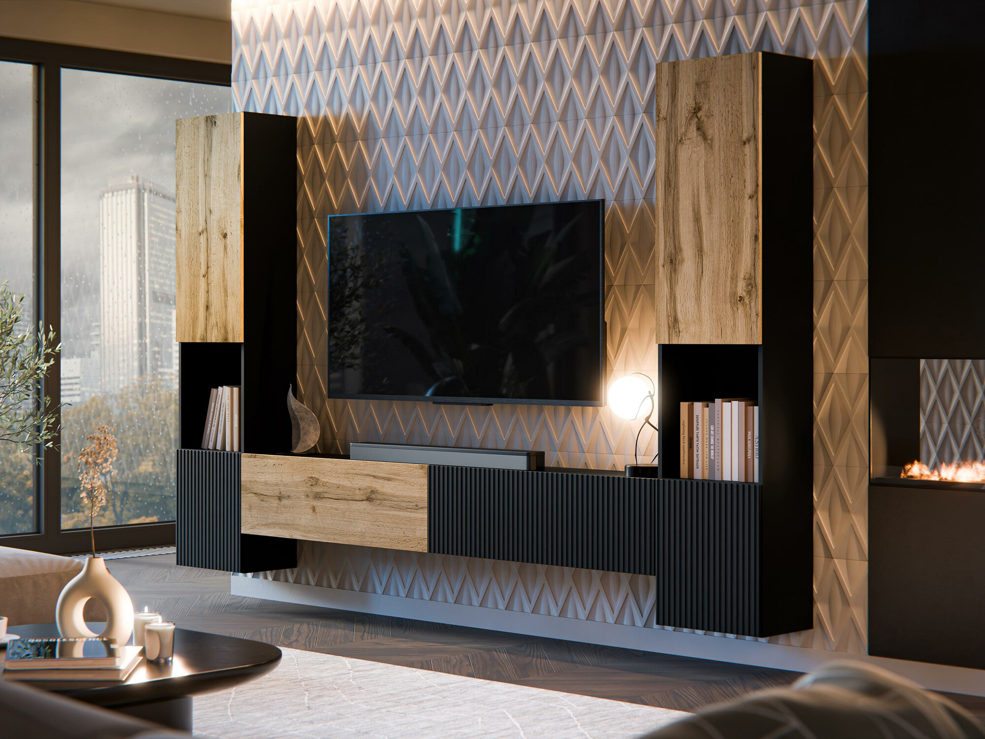 Woonkamerset Calveru 107 (Zwart + Wotan eik)
