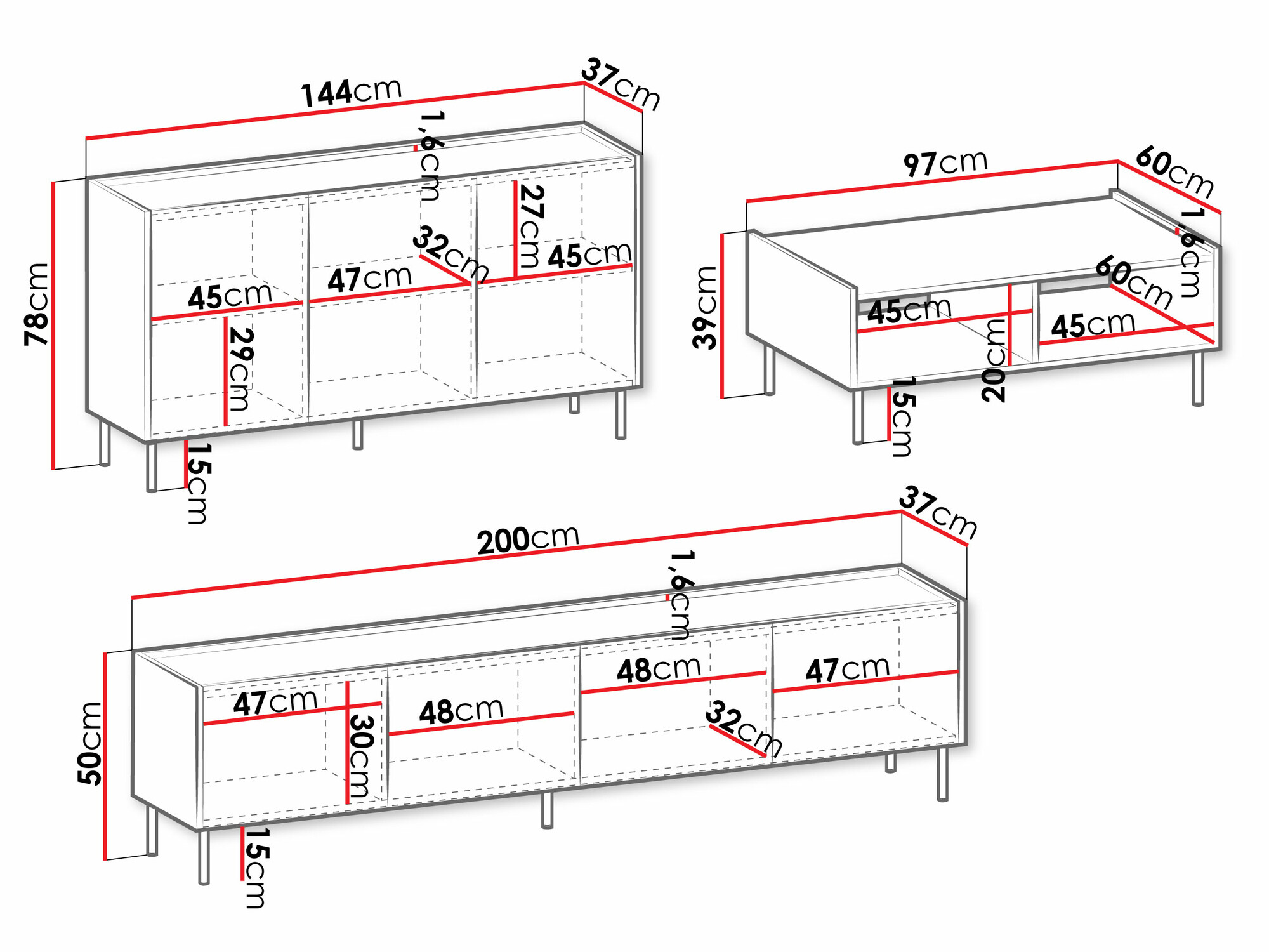 39 cm  60 cm  97 cm