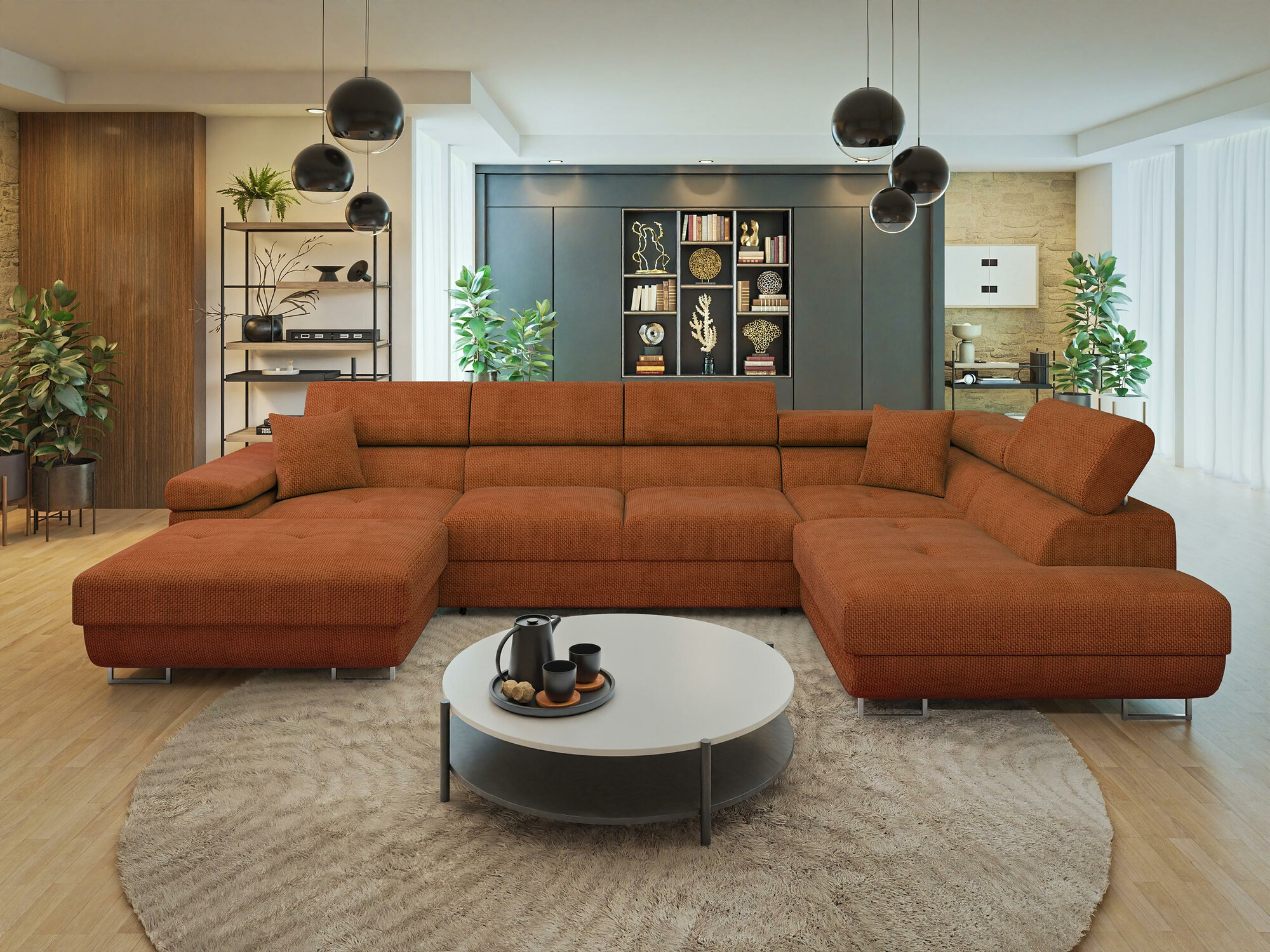 Kijk je frontaal naar de bank, dan bevindt het verlengde deel van de rechteroptie zich rechts van u. De gekozen hoekoptie moet de doorstroming van de ruimte verbeteren en ervoor zorgen dat je je gemakkelijk door de ruimte kunt bewegen.