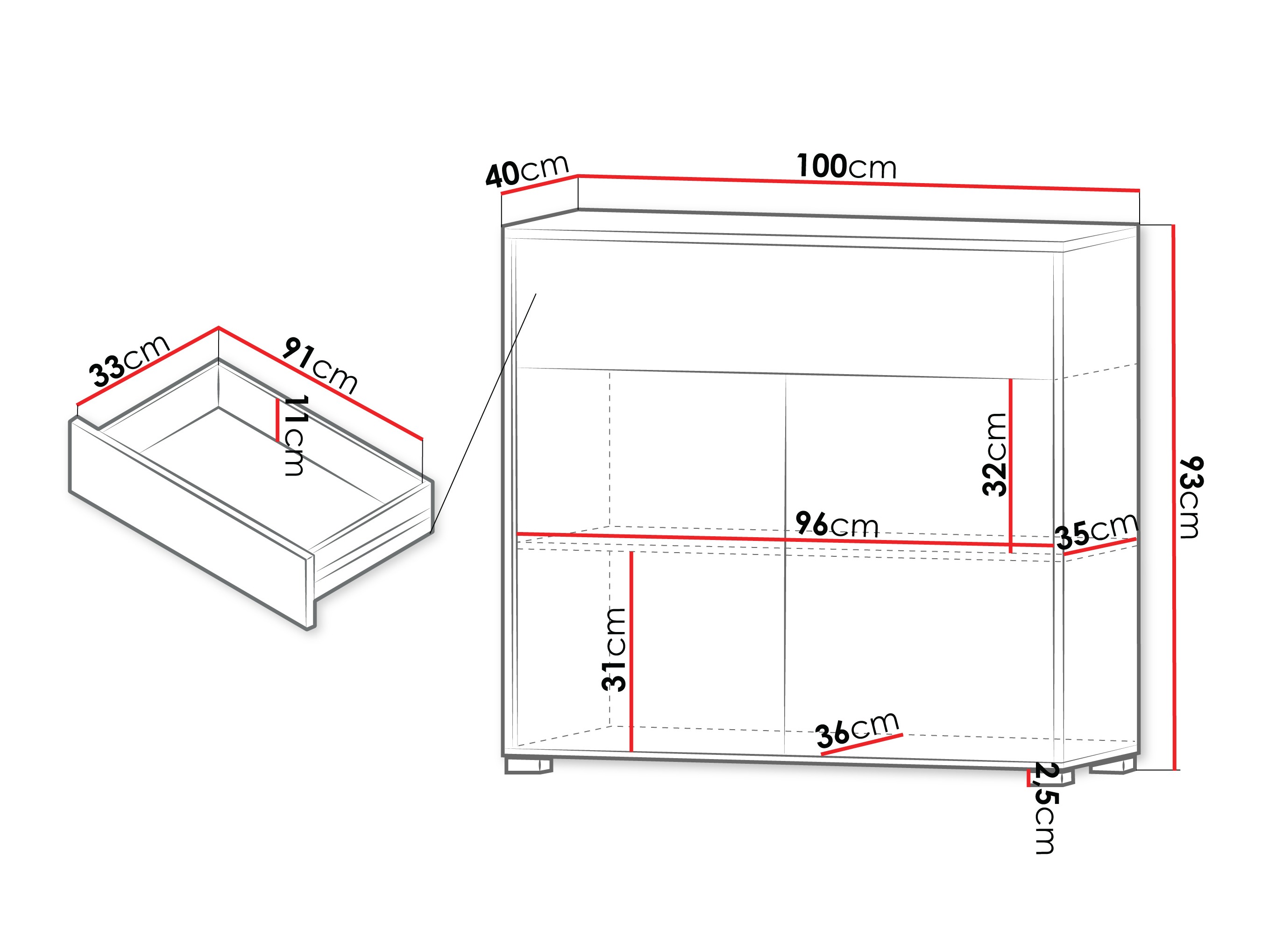 93 cm  100 cm  40 cm