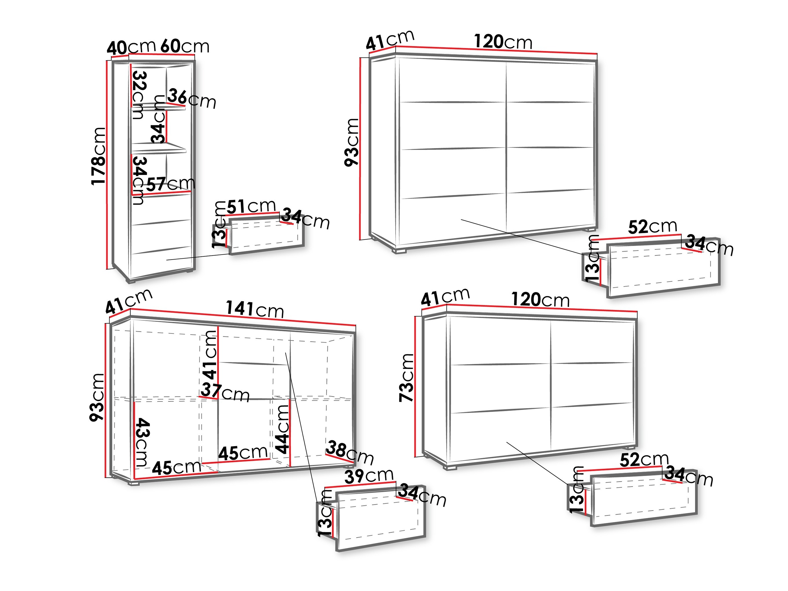 93 x 141 x 41; 73 x 120 x 41; 93 x 120 x 41 cm