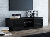 TV-meubel Elbvelu 124 (Zwart + Glanzend zwart)