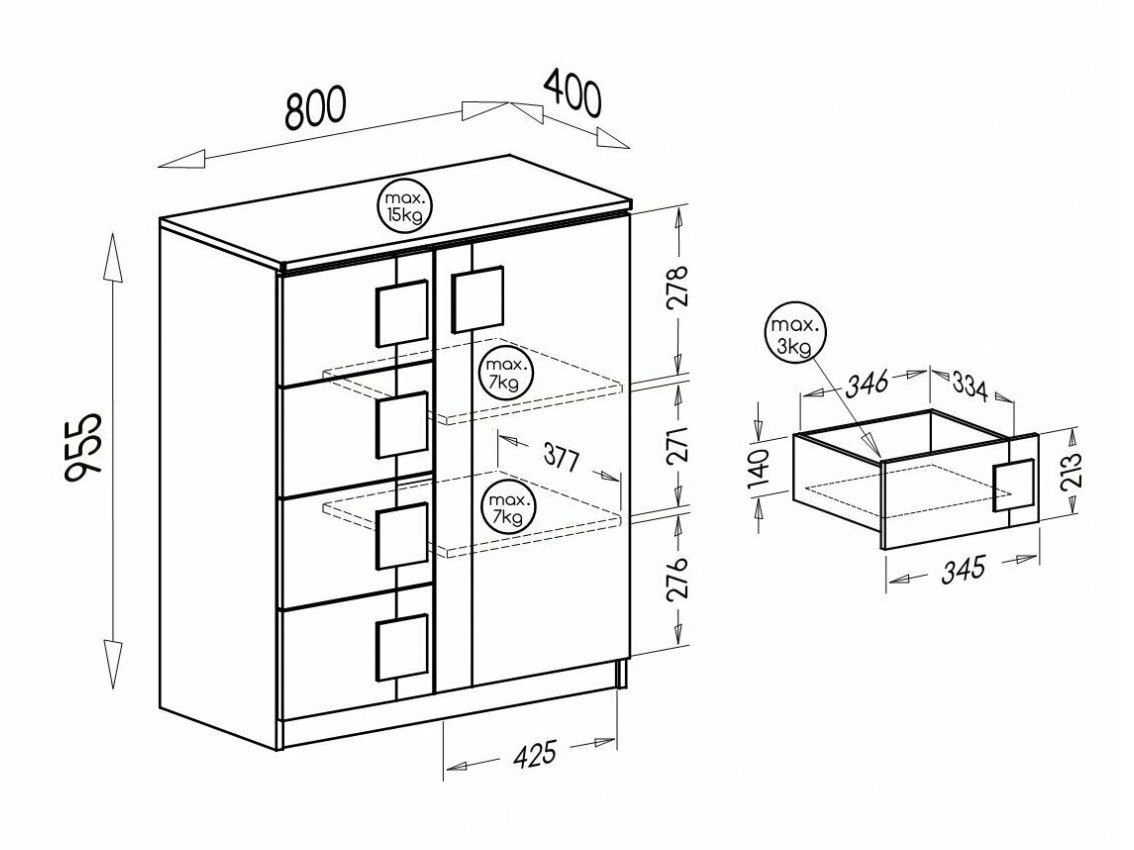 Maximaal draagvermogen van de lade: