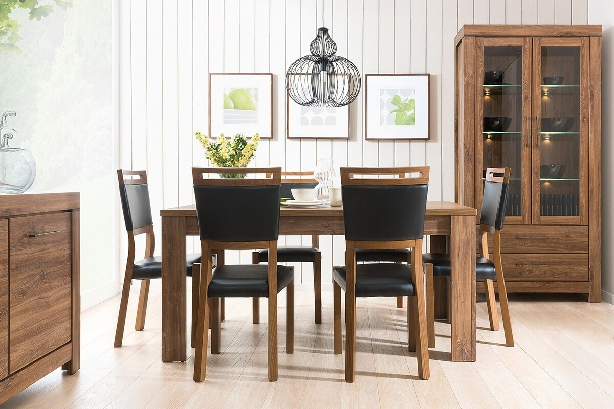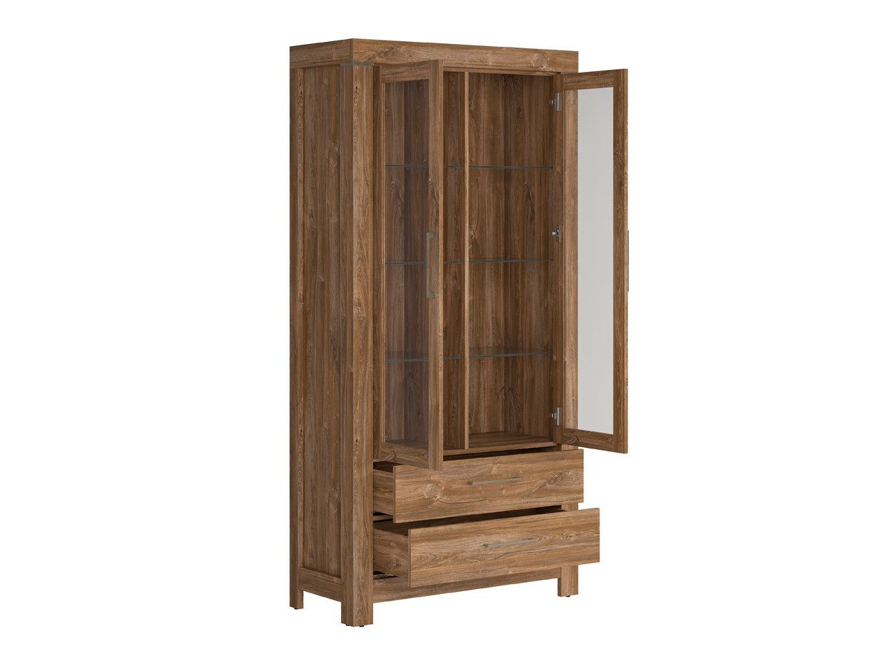 De eenvoud, exclusieve vormen en de weelderige kleur van de gevels van de meubelcollectie passen perfect in een breed scala van interieurs en spreken zowel liefhebbers van klassieke als exclusieve ontwerpen aan. De gevels van dit meubilair hebben een duidelijk zichtbaar houtpatroon, dat samen met de kleur van "Stirling" eikenhout gezelligheid en warmte geeft, en het geheel wordt esthetisch aangevuld met comfortabele metalen handgrepen. Door het brede assortiment kunnen deze modulaire meubels met succes worden gebruikt in de meest uiteenlopende kamers in huis en met elkaar worden gecombineerd, waardoor combinaties ontstaan die aan individuele behoeften voldoen. De interieurs van de kasten en laden zijn ruim genoeg om verschillende voorwerpen efficiënt op te bergen, terwijl de LED-verlichting in de vitrine, hangplanken, tv-tafels en legplanken een vleugje romantiek geeft. De vitrines in deze collectie zijn beglaasd met gehard glas, dat een veel hogere weerstand heeft dan gewoon glas. De collectie meubels heeft een stil sluitmechanisme dat zal zorgen voor meer comfort en zal je toelaten om extra lawaai te vermijden bij het gebruik van meubellades of kasten.