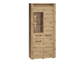 We beginnen gezellige momenten thuis steeds meer te waarderen. Thuis wordt een plek voor rust, werk en ontspanning. De op de natuur geïnspireerde collectie ziet er aantrekkelijk uit met de natuurlijke kleuren en details. Deze collectie is perfect voor wie meer gezelligheid in huis wil creëren. Eenvoudige lijnen en een eikenhouten kleur vormen een exclusief duo. Misschien is deze collectie waar je naar op zoek bent? De gevels van de meubels zijn bedrukt met houten patronen, die de collectie uniek maken. De metalen handgrepen benadrukken het exclusieve ontwerp van de meubels. De decoratieve ornamenten geven het extra karakter, die worden geaccentueerd door LED-verlichting die in de gevels van de meubels is ingebouwd. Ook voor de vitrines heb je LED-verlichting als optie, waardoor de details van het interieur worden benadrukt. "Artisan" eiken gevels, gehard glas, LED-verlichting en metalen handgrepen maken de collectie uniek. Alles wordt gevormd door de perfect benutte ruimte in de meubels. Zo kun je al je belangrijkste spullen netjes opbergen.