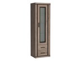 De vitrinekast is ruim en ik hou van het donkere glas