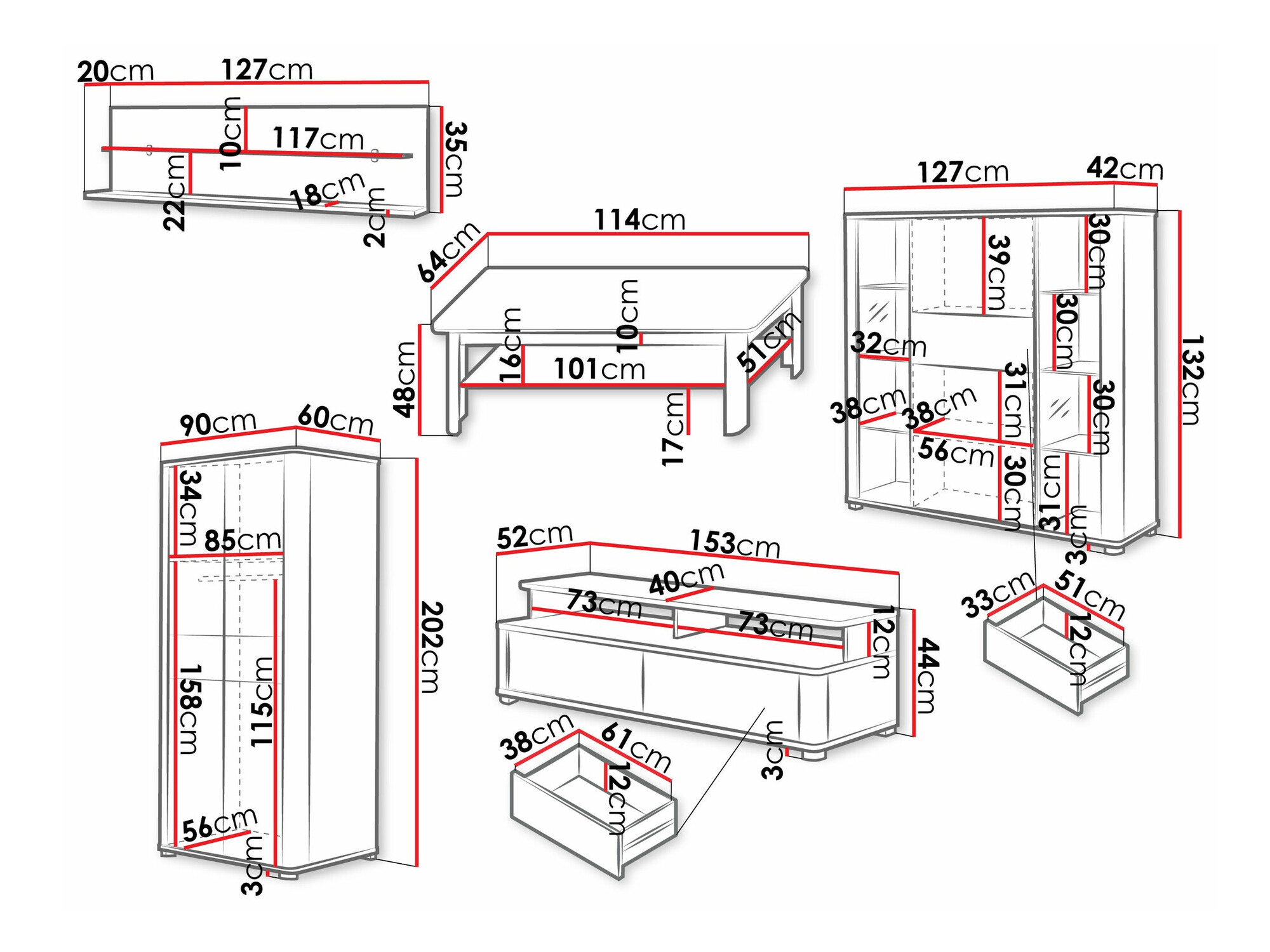 48 x 114 x 64 cm