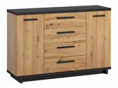 Bij het zoeken naar een meubel voor uw woning is het belangrijk om de harmonie in het interieur te bewaren. Als u van plan bent om zelf een huisontwerper te worden, zullen meubelcollecties een echte redding zijn. Meubelcollecties zullen u helpen om zonder veel moeite een solide interieur te creëren. Deze meubelcollectie biedt meubels voor de woon- en slaapkamer. Modern design en elegante lijnen vullen elkaar aan waardoor een perfecte combinatie ontstaat. De collectie valt op door de warme kleuren en houtpatronen. Matzwarte panelen passen bij eikenhouten fronten. Deze combinatie van kleuren vult elkaar aan en benadrukt de vorm van de meubels. In de vitrines wordt gehard glas gebruikt, dat resistenter is dan gewoon glas. Een bed met een exclusief ontwerp wordt het hoogtepunt van de slaapkamer. Zacht hoofdbord, bedlinnen box en een gashefmechanisme, alles wat u nodig heeft voor uw perfecte rust. De randen van de meubels uit deze collectie zijn beschermd met afwerkband, dat gebruikt wordt om de zijkanten van de panelen te beschermen. Maak u geen zorgen over de integriteit van het interieur en creëer een gezellig interieur van individuele meubels of kies uit meubelsets.